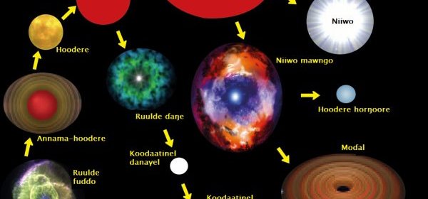 Ɗo jalbeendi natti ɗo, caggal nde hoodere nde fetti, ɓernde nde jokkat hamondirde e famɗitde haa wonta koodel korŋowel (étoile à neutrons) ko ɓuri heewde wuntude ko hoodere corfi.
